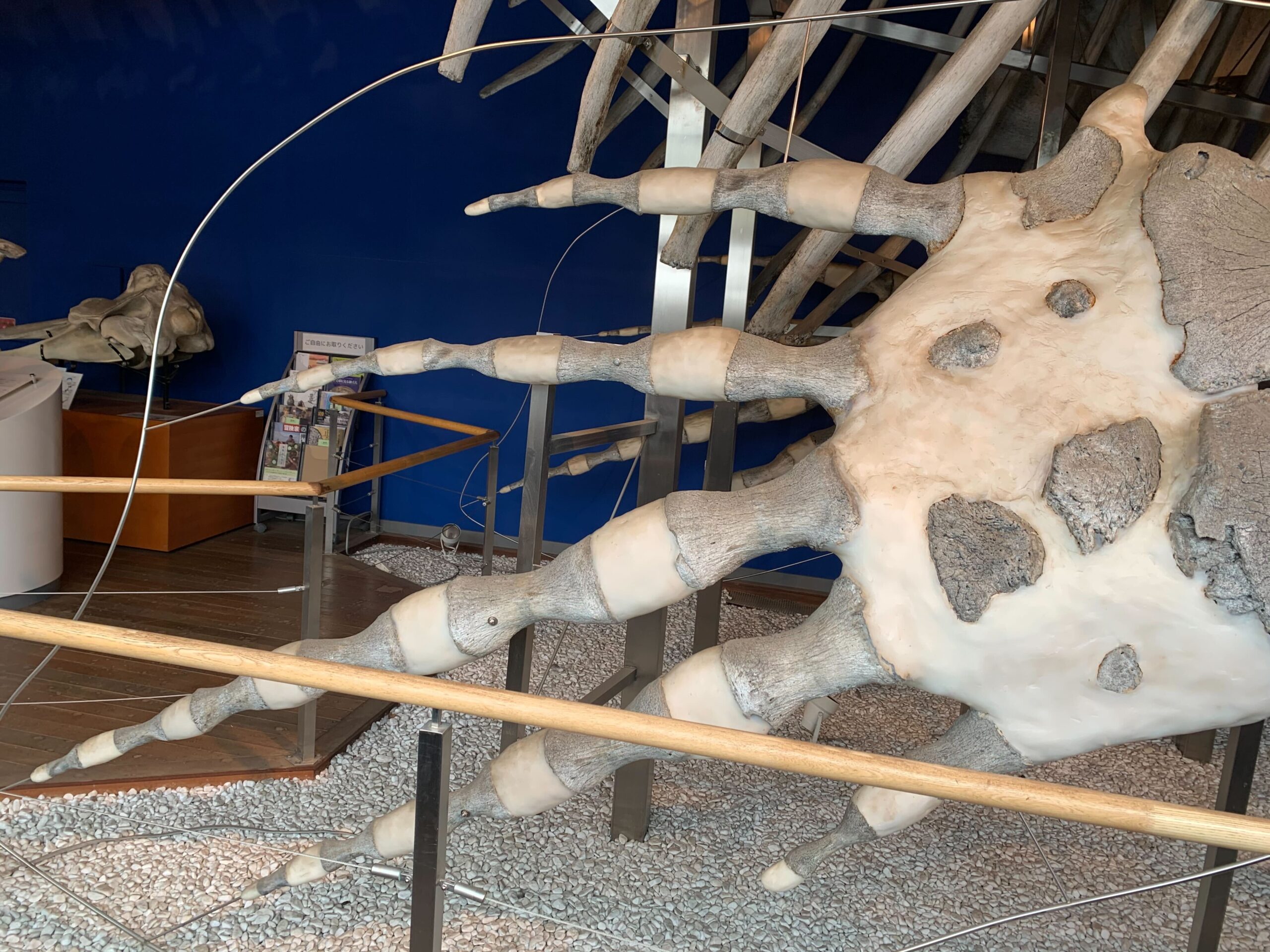 私たちと同じ哺乳類であり、その祖先は陸上で生活をしていたクジラの胸ヒレにあたる骨格標本ですが・・・