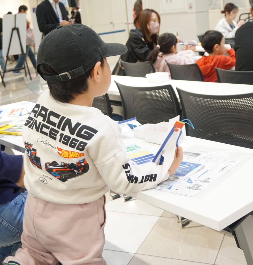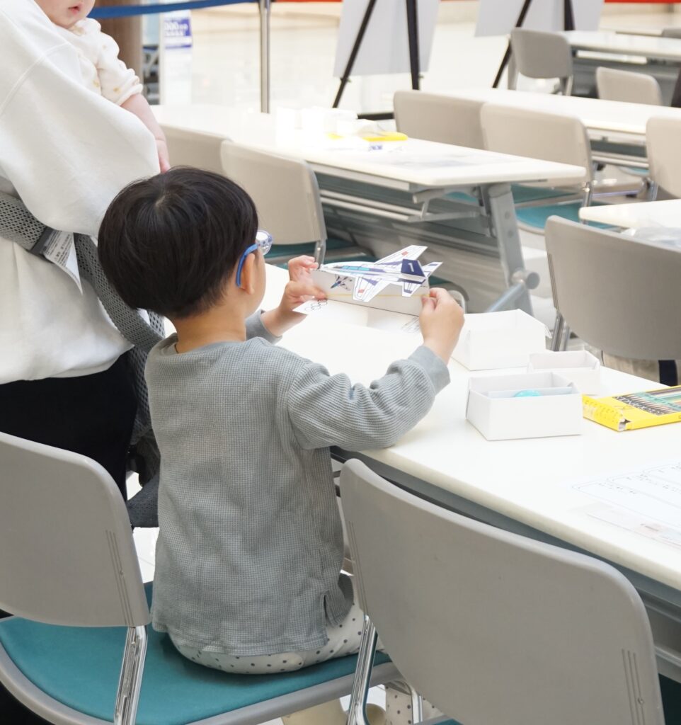 あいち航空ミュージアムの『出張サイエンスラボ』では、こうした授業で楽しくお勉強したあとに、飛行機の工作や紙ヒコーキをつくって実際に飛ばしてみるという教室を実施しています。