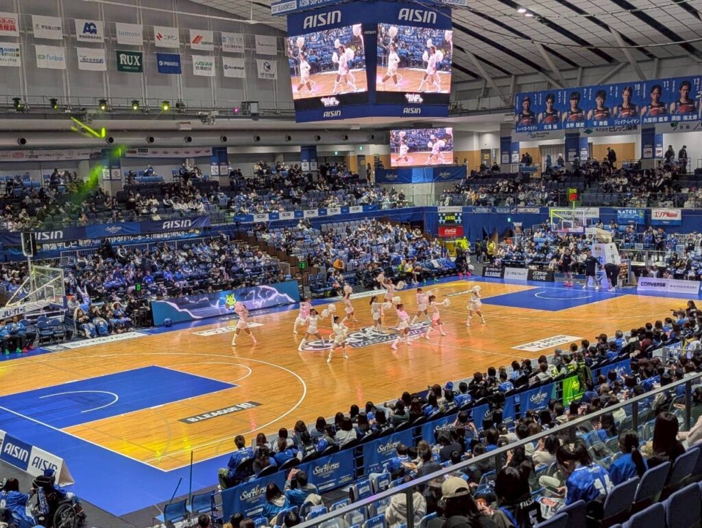 Bリーグには足を運んだことはなかったのですが、客席はほぼ満員で、試合中はポイント間やタイムアウト中などにチアリーダーのダンスや観客の声援、DJの音楽・MCの熱い煽りなど様々な要素が融合して会場の雰囲気作りが行われていました。