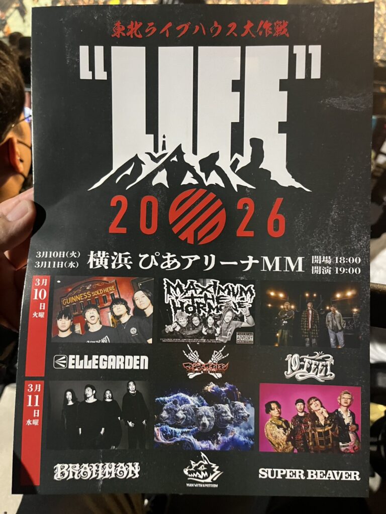 先週、ぴあアリーナMMに復興支援イベントの東北ライブハウス大作戦”LIFE”に行ってきました。