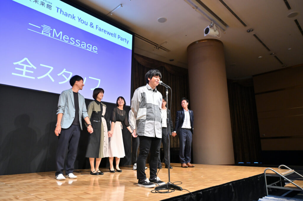 スタッフ全員がこんな風に未来館に集まることはなかったので、改めてこんなにたくさんのスタッフが働いてくれていたんだなぁ、と感激しました。