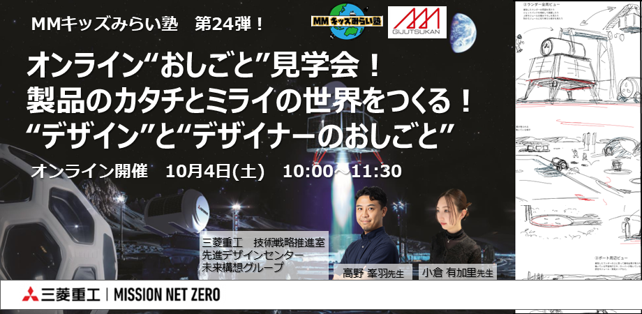 今回のMMキッズみらい塾のテーマは“デザインの世界”と、”その世界で活躍する人たち”です!                   深海から宇宙までの幅広いフィールドで活用される製品を数多く取り扱う“ものづくり”の三菱重工。