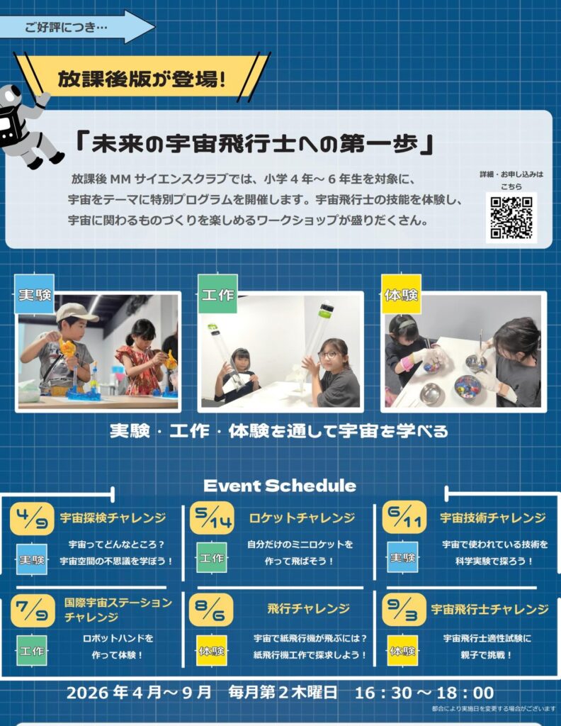 【三菱みなとみらい技術館】2026年度『放課後MMサイエンスクラブ』スタート!
