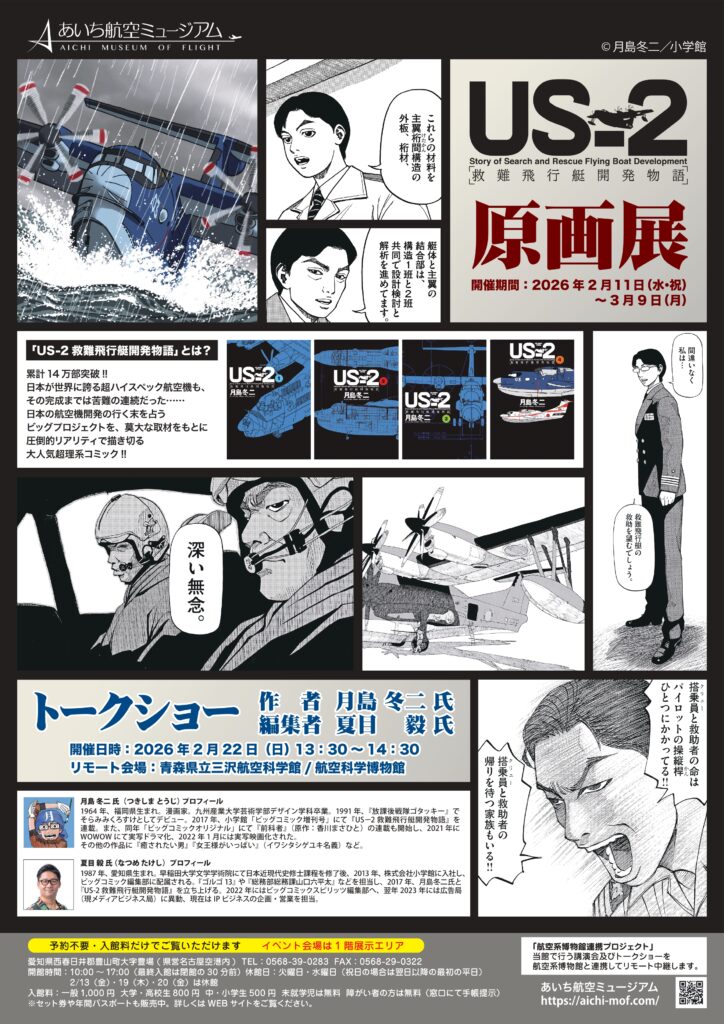 【あいち航空ミュージアム】漫画家 月島 冬二 氏 『US-2救難飛行艇開発物語』原画展&トークショー