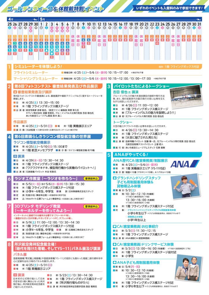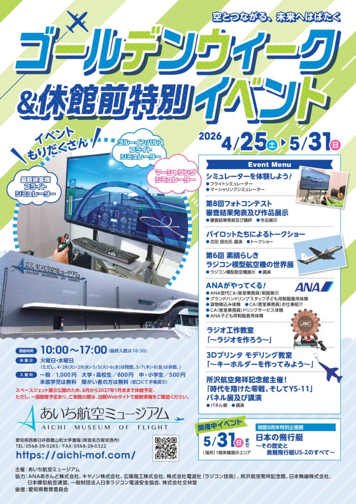 【あいち航空ミュージアム】ゴールデンウィーク&休館前特別イベントの開催