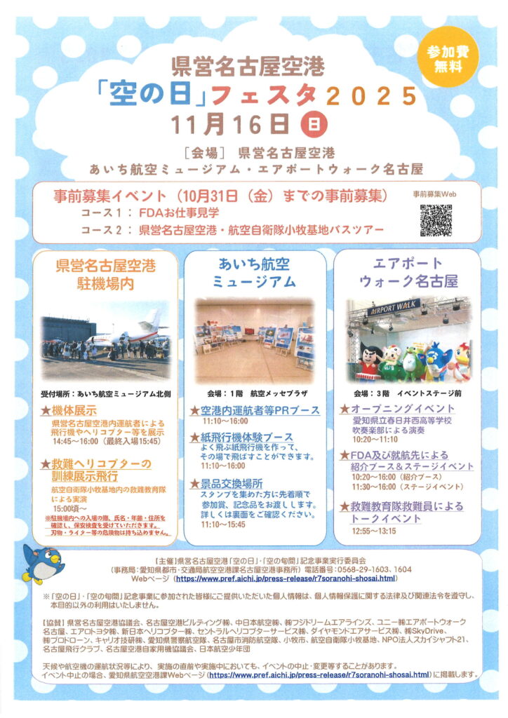 県営名古屋空港「空の日」フェスタ2025が11月16日(日)に開催されます。